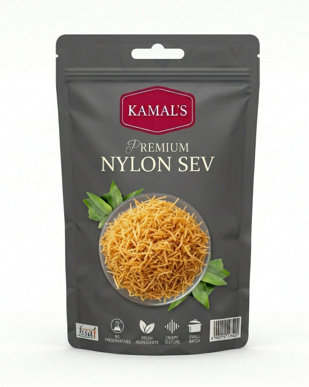 Crispy, thin, and silky in texture, this Nylon Sev adds a gentle crunch and mild flavor to any dish. Ideal for topping chaats or enjoying as a light snack.